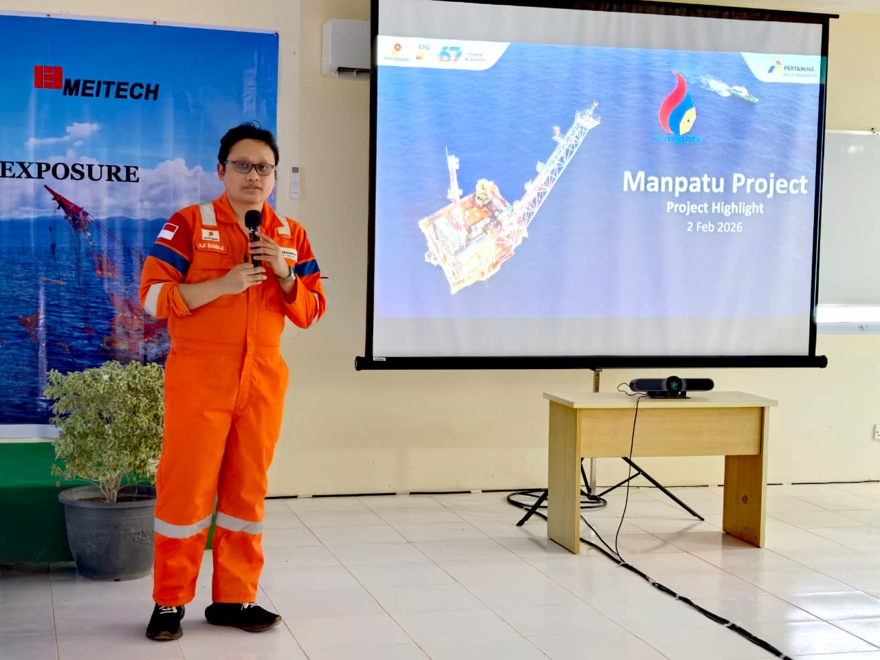 Kunjungan fabrication yard ini juga disertai paparan proyek Manpatu milik Pertamina Hulu Mahakam yang dipresentasekan Ir. Rohadi Hendarsan, Project Manager Manpatu didampingi oleh Aji Samiaji Project Coordinator proyek ini. “Semoga proses sailing away dari yard ke lokasi instalasi dilancarkan, sesuai cita-cita kita bersama, Aamin” lanjut Bapak Rohadi.