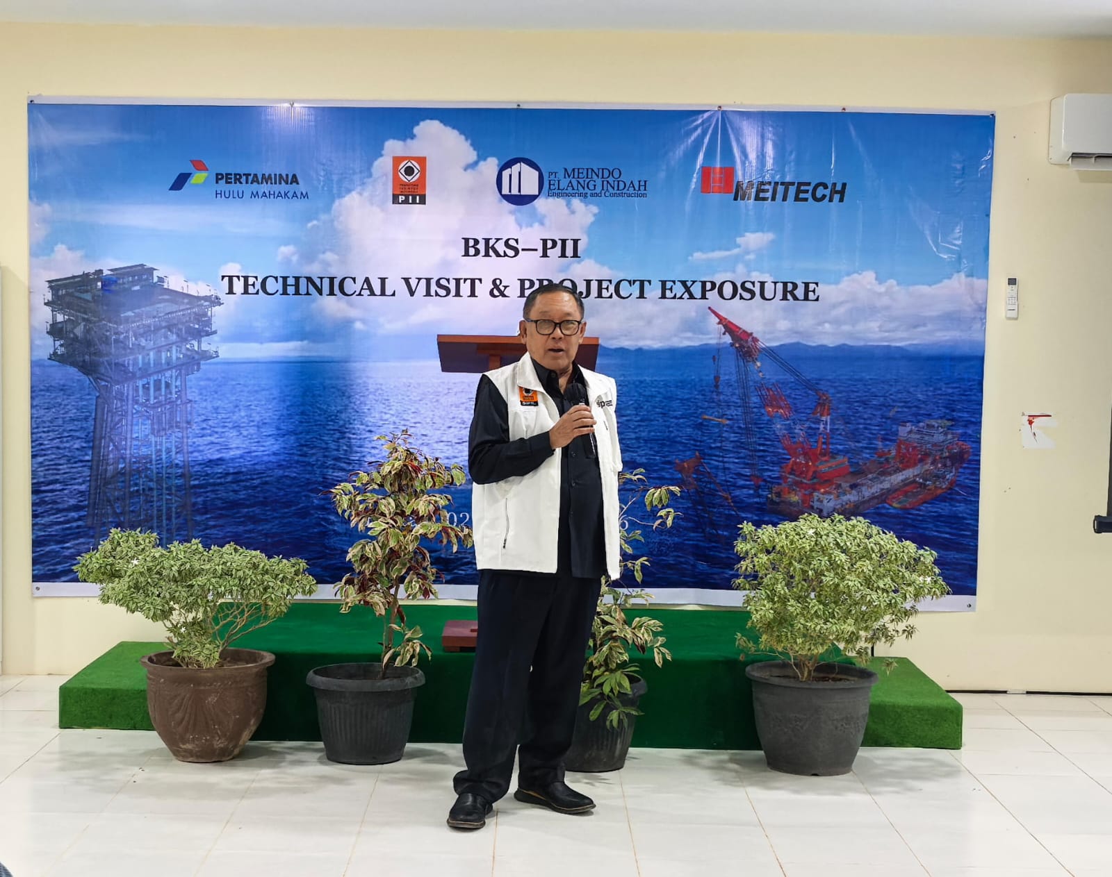 Chief Business Development Meindo Elang Indah, Ir. Bisri Hasyim, IPU yang juga merupakan anggota Dewan Pakar BKS PII menyambut kedatangan 28 peserta technical visit di oil & gas fabrication facility Meitech di Pulau Bintan. “Kami dari Meindo/Meitech mendapatkan kehormatan menerima kunjungan delegasi dan peserta dari BK Sipil PII yang dipimpin langsung oleh Ketua BKS PII, Ir. Habibie Razak, IPU., FIEAust., EngExec., IntPE(Aus) dan semoga momentum technical visit and project exposure ini menjadi wadah untuk meningkatkan kompetensi keinsinyuran kita terkait fabrikasi dan instalasi proyek lepas pantai”.